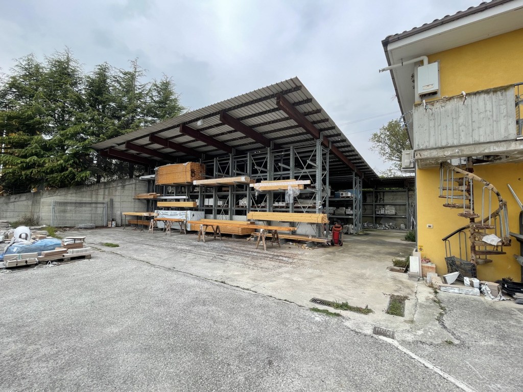 Il compendio immobiliare è costituito da una palazzina uffici, un capannone metallico con varie tettoie e manufatti in aderenza, un fabbricato adibito ad esposizione, un appartamento del custode al piano primo con piccola corte esclusiva, una grande tettoia metallica. Si precisa che, oltre ai suddetti fabbricati, sul piazzale imbrecciato è presente anche una grande scaffalatura metallica ancorata al terreno con copertura a due acque.